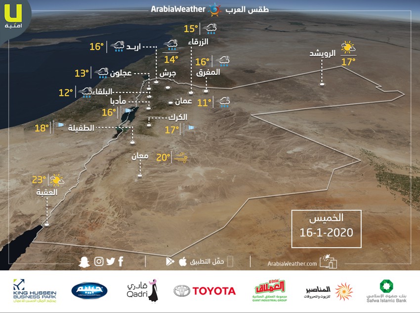 طقس العرب اول واكبر موقع عربي يقدم معلومات عن توقعات حالة الطقس والمناخ والاحوال الجوية واخبار الطقس والنشرة الجوية لمنطقة واشنطن و الولايات المتحدة و مدن الوطن العربي والعالم. الأردن حالة الطقس ودرجات الحرارة العظمى والصغرى المتوقعة يوم الخميس 21 3 2019 طقس العرب طقس العرب. 2812974 likes 72755 talking about this.